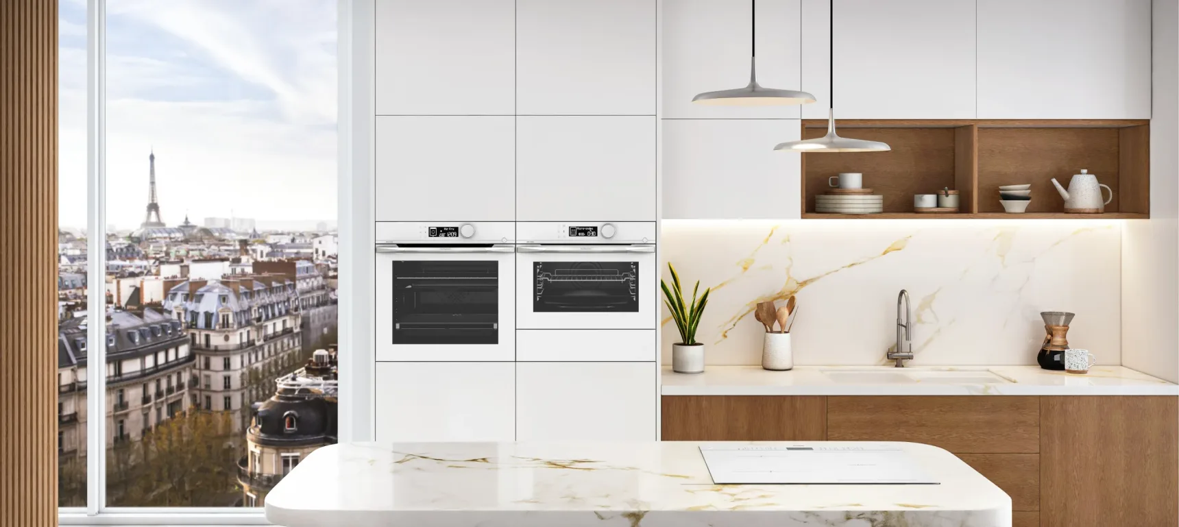 L’accord intemporel du blanc et de l’inox pour une partition tout en pureté et en élégance. Le classicisme immaculé du blanc est ponctué de détails en inox brossé qui captent la lumière et soulignent la beauté des matériaux.